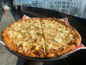 Nuestra ya deliciosa masa, piña recién cortada, jamón cubicado y queso mozzarella. ¡Ideal para tu comida!