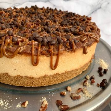 Imagina nuestro Pay de nuez y el Cheesecake de casa, fusionados a la perfección en una suave, cremosa y deliciosa combinación de texturas y sabores, con un horneado delicado.