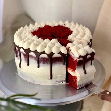 Delicioso bizcocho con una delicada combinación de vainilla y cocoa mexicana, betún cremoso a base de queso crema y vainilla y un drip de chocolate